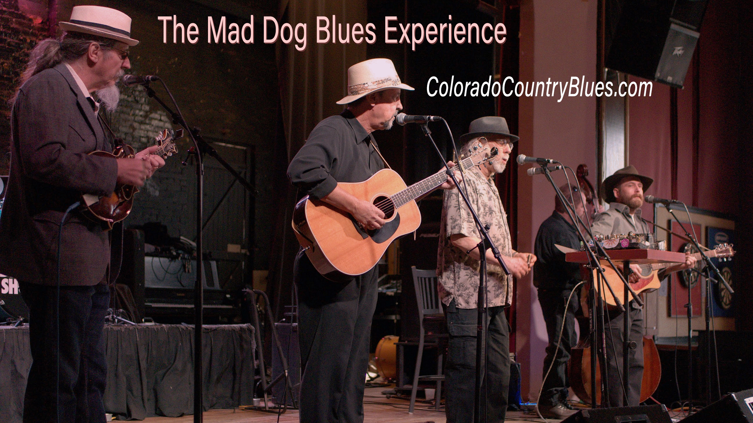 MAD DOG BLUES performs as an acoustic blues duo, trio or band. Our unique “Colorado Country Blues” sound fuses delta blues, southern boogie, honky-tonk, hokum and acoustic jam music. Along with Mad Dog Friedman on harmonica, the Mad Dog Blues Experience (5 piece band) includes Jeff Becker (Hippie Buckaroos) on mandolin, Clark Chanslor (White Water Ramble) on stand-up bass, Sean Bennight (from St. Louis) on acoustic guitar and Mark Kaczorowski (Blues on the Lamb) on acoustic guitar. We hope you enjoy our original “Colorado Country Blues” sound, a unique fusion of delta blues, bluegrass, honky-tonk, hokum and acoustic jam music. Our website is www.coloradocountryblues.com and our Facebook page is www.facebook.com/coloradocountryblues.